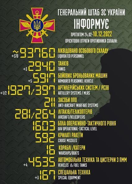 Qeyd olunub ki, fevralın 24-dən etibarən Rusiya tərəfi 93 760 nəfər canlı qüvvə itirib.