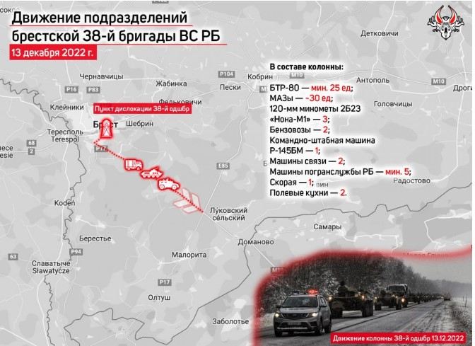 Belarus ordusunun ilk bölmələri döyüş hazırlığının yoxlanılması adı altında Brestdəki daimi dislokasiya məntəqələrindən Ukrayna ilə sərhədə doğru hərəkət edib.