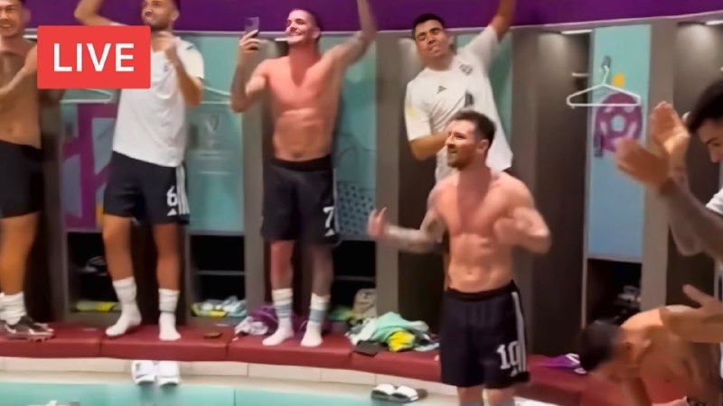 DÇ-2022-nin qalibi Argentinanın oyunçuları soyunub-geyinmə otağında qələbə sevincini belə yaşayırlar.