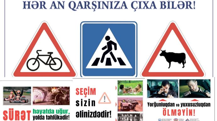 Maarifləndirici lövhələrdə sürücülərin həyat və təhlükəsizliyi üçün nəzərdə tutulmuş ifadələr və fotoşəkillər yer alıb. “Diqqət hər an qarşınıza çıxa bilər”, “Sürət həyatda uğur, yolda təhlükədir”, “Seçim sizin öz əlinizdədir”, “Yorğunluqdan və yuxusuzluqdan ölməyin!” şüarları həm piyadaların, həm də sürücülərin diqqətini cəlb etmək və sükan arxasında, yolu keçərkən ehtiyatlı olmağa hesablanıb.