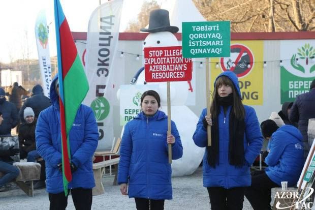 Sitat.info AZƏRTAC-a istinadən xəbər verir ki, bu dəqiqələrdə aksiya iştirakçıları Azərbaycan ərazilərində faydalı qazıntı yataqlarının qanunsuz istismarına etirazlarını bildirən plakatlar qaldıraraq şüarlar səsləndirirlər.