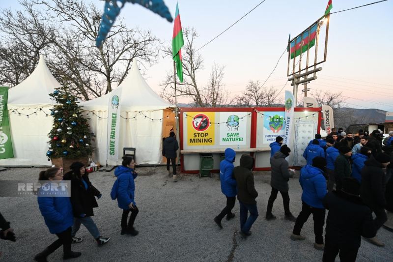 Hazırda havanın şaxtalı olmasına baxmayaraq, ekofəallar yolun hər iki tərəfində, hərəkətə maneə törətmədən üzərində Azərbaycan, rus və ingilis dillərində yazılmış plakatlar qaldırıb, şüarlar səsləndirirlər.