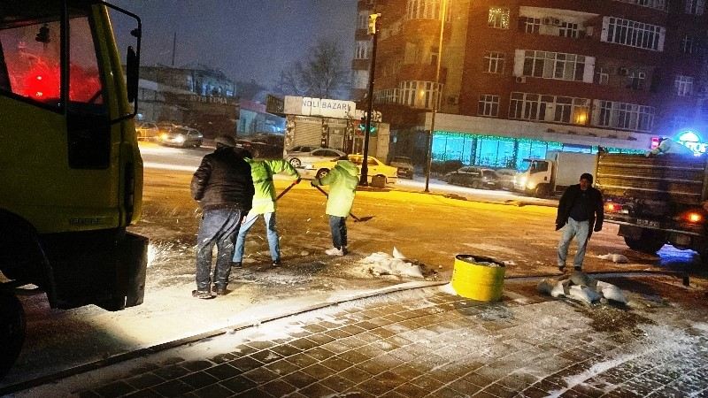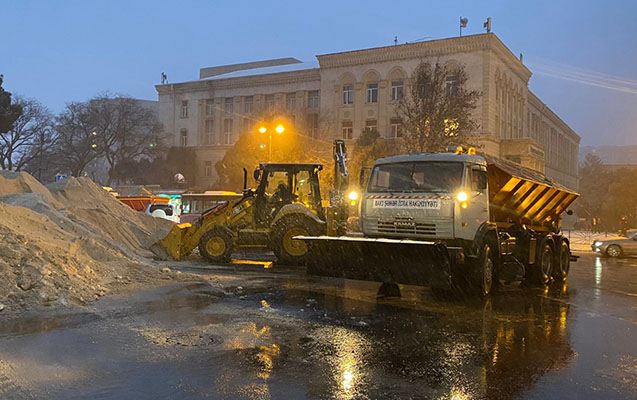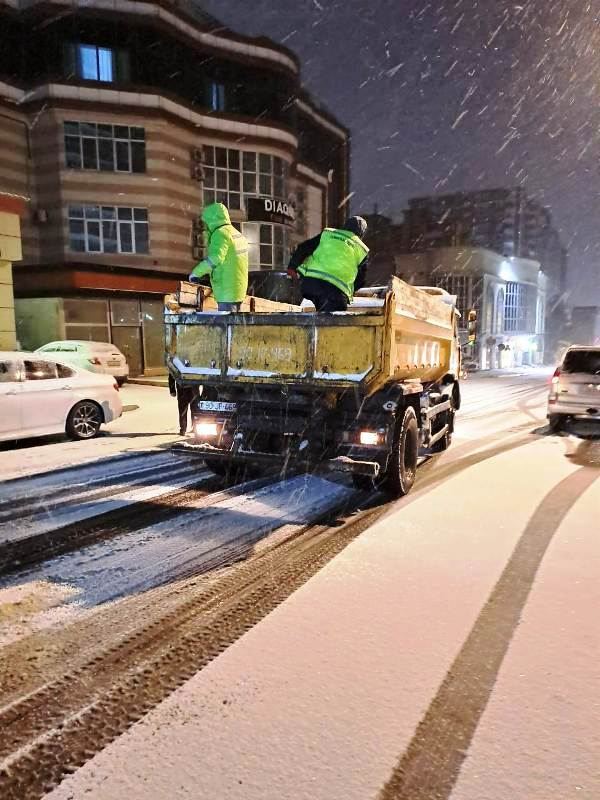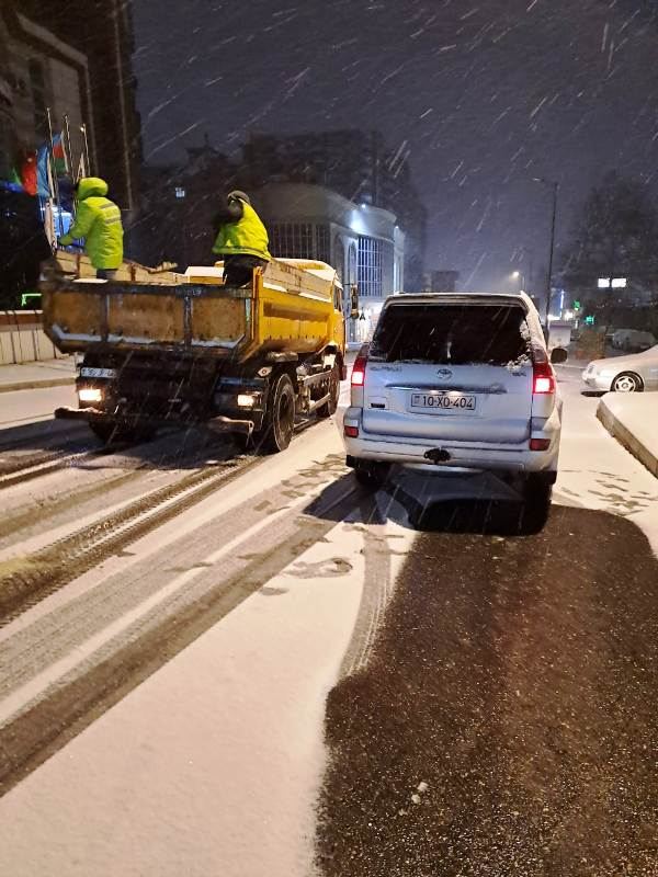 Şaxtalı hava şəraitində qarın təmizlənməsi və xüsusi təyinatlı texnika vasitəsilə yollara duz və kimyəvi maddələrin səpilməsi həyata keçirilib. İşlər səhər saat 05:00-dan etibarən daha da intensivləşib. Bütün gecə ərzində Bakı Şəhər və Rayon İcra Hakimiyyətlərin rəhbər nümayəndələri ərazilərdə olub və aparılan işləri nəzarətdə saxlayıblar.