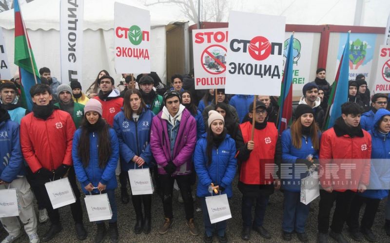 Belə ki, ekofəallar və gənc könüllülər “Azərbaycan oyaqdır, sərvətinə dayaqdır!”, “Azərbaycan vahiddir, sərvətinə sahibdir!”, “Ekoloji cinayətə son!”, “Stop ekoterror!”, “Берегите природу!”, “Экоциду нет! Мониторингу да!” şüarlarını səsləndirirlər.