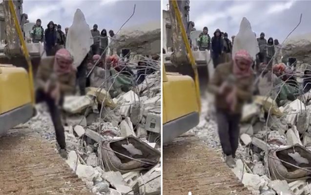 Suriyanın Hələb şəhərində dağıntılar altında qalan qadın körpə dünyaya gətirib.