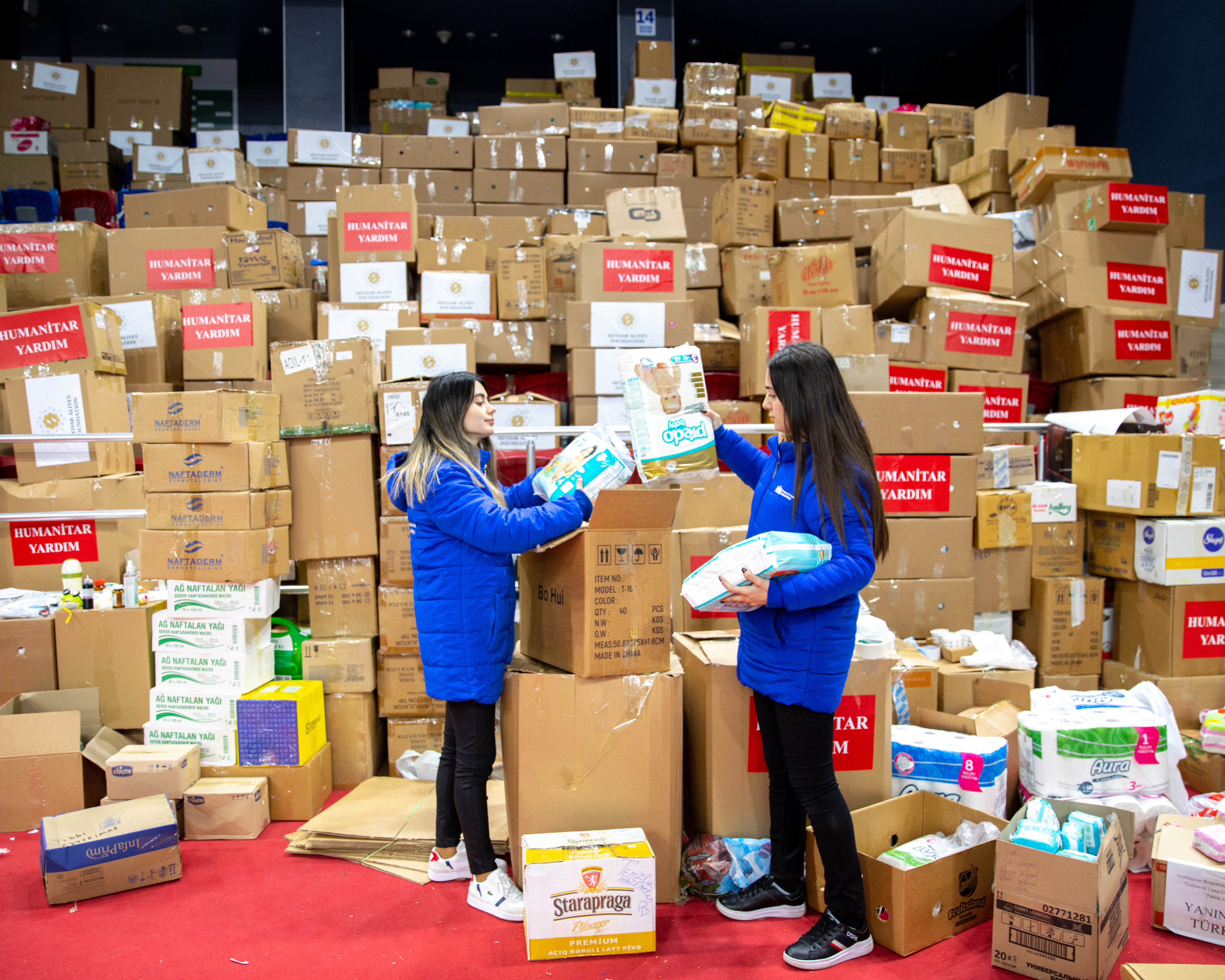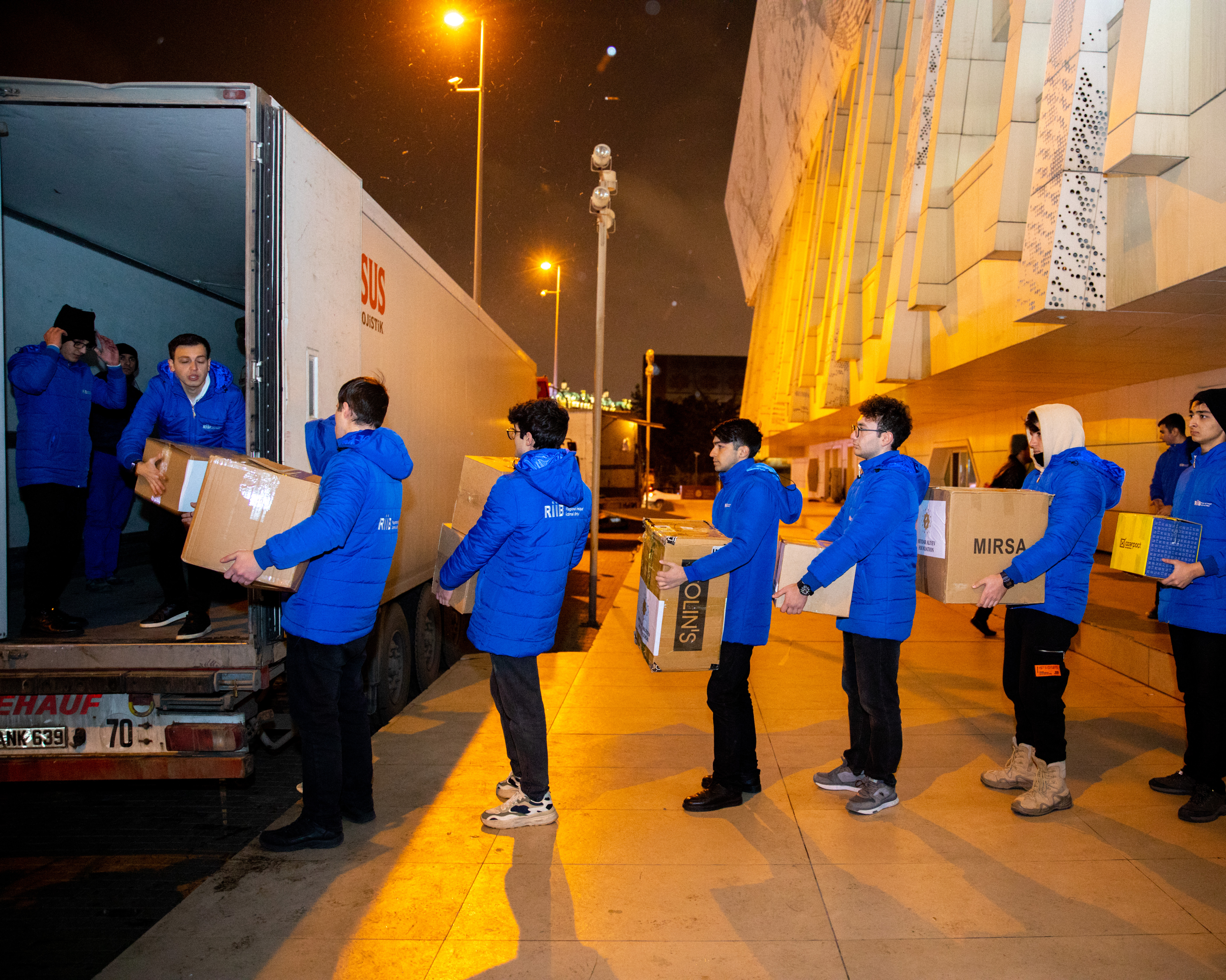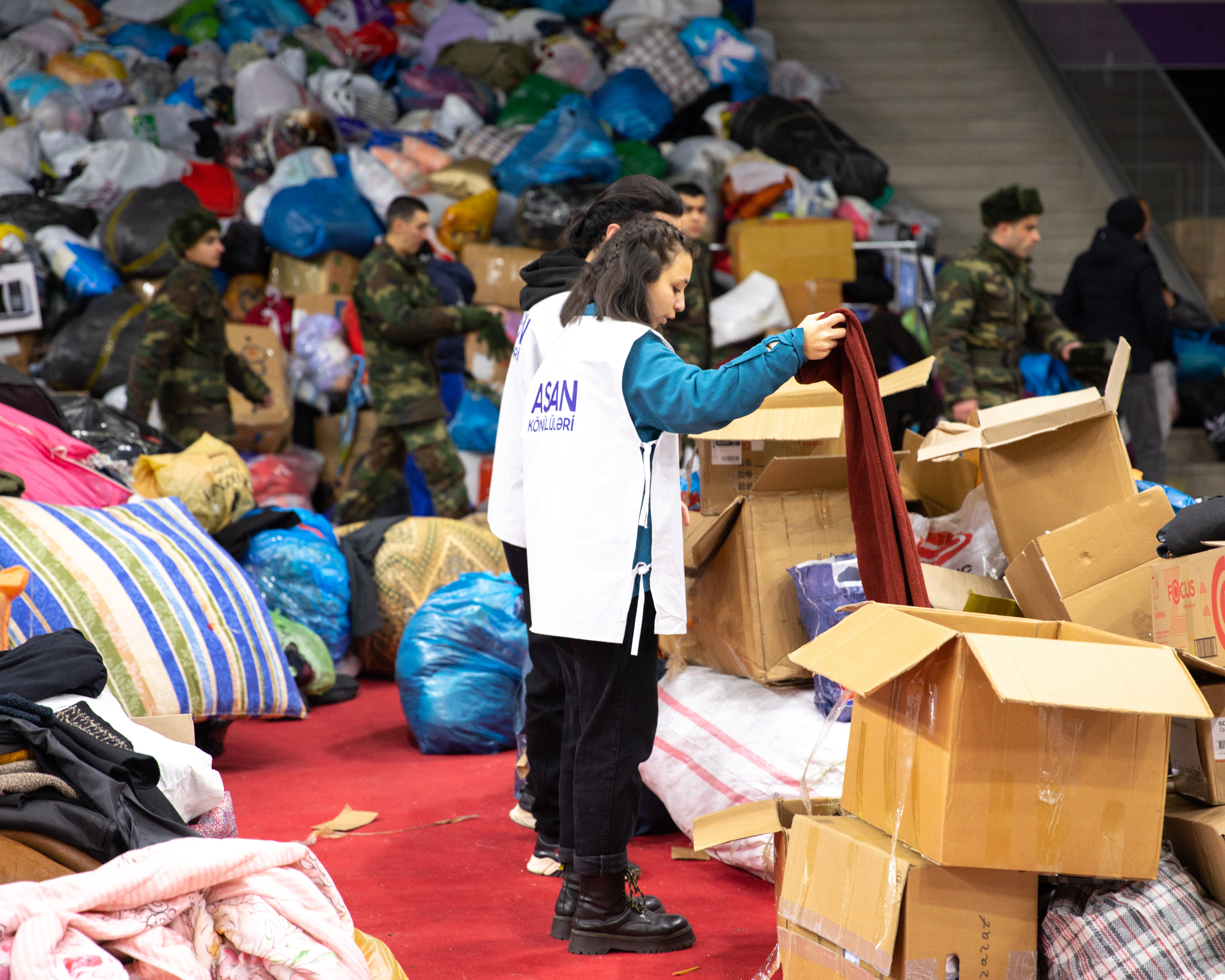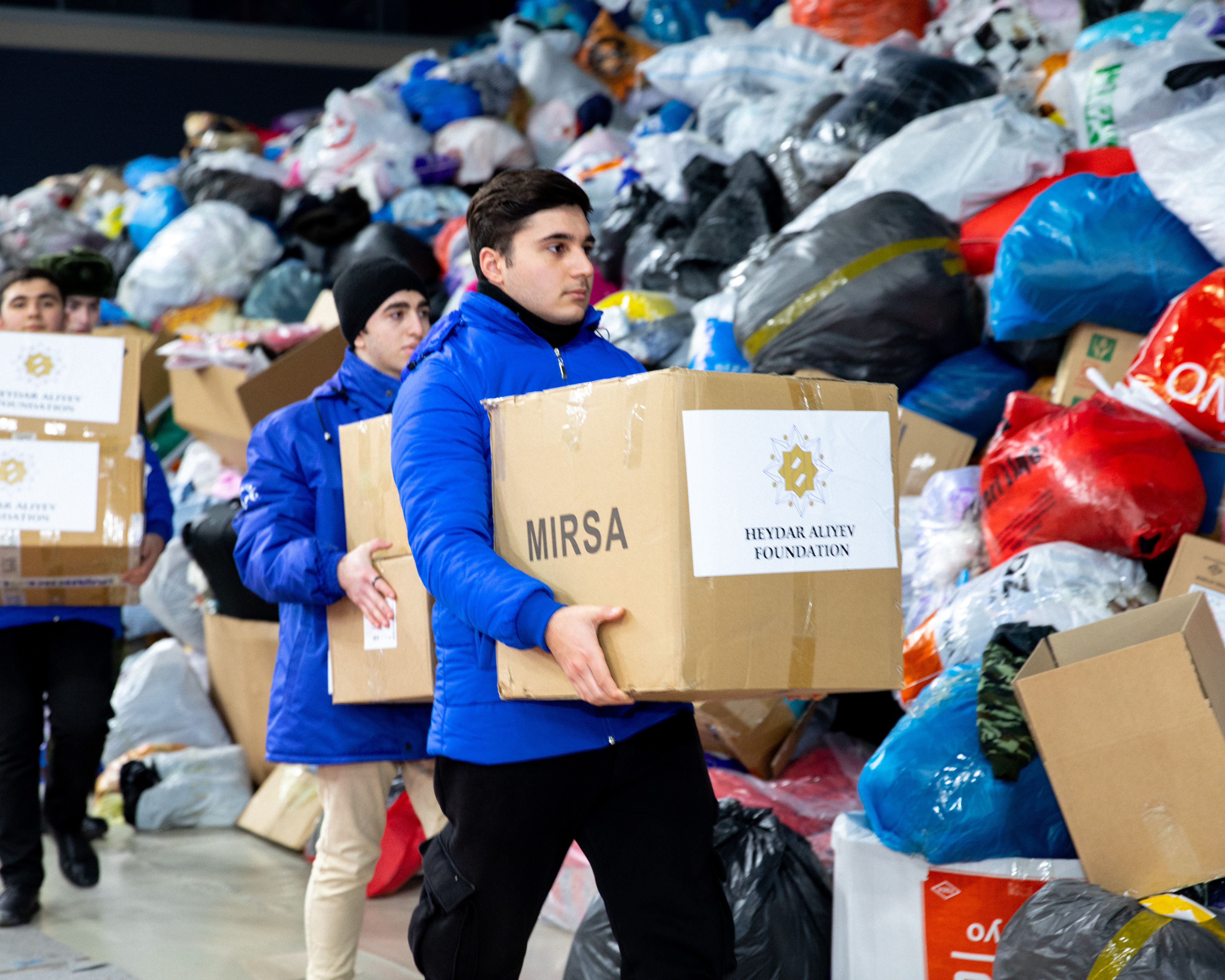 Türkiyənin Azərbaycandakı səfirliyinin humanitar yardım çağırışına dəstək olaraq təşkilan olunan aksiyada vətəndaşlar tərəfindən ianə olunan bütün isti geyimlər və lazımi əşyalar könüllülər tərəfindən çeşidlənərək qutularda TIR-lara yüklənib və qardaş ölkəyə yollanmaq üçün istiqamət alıb.