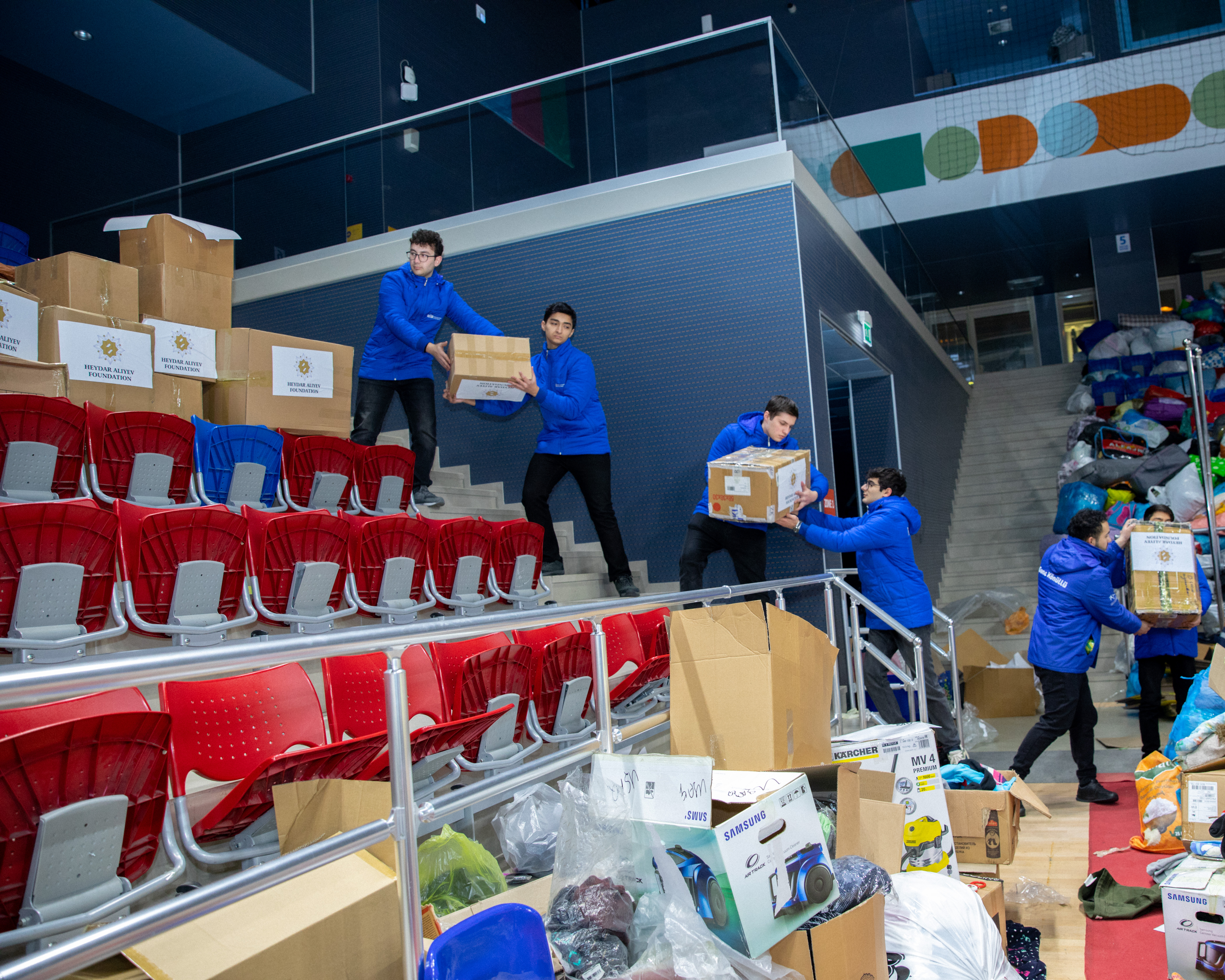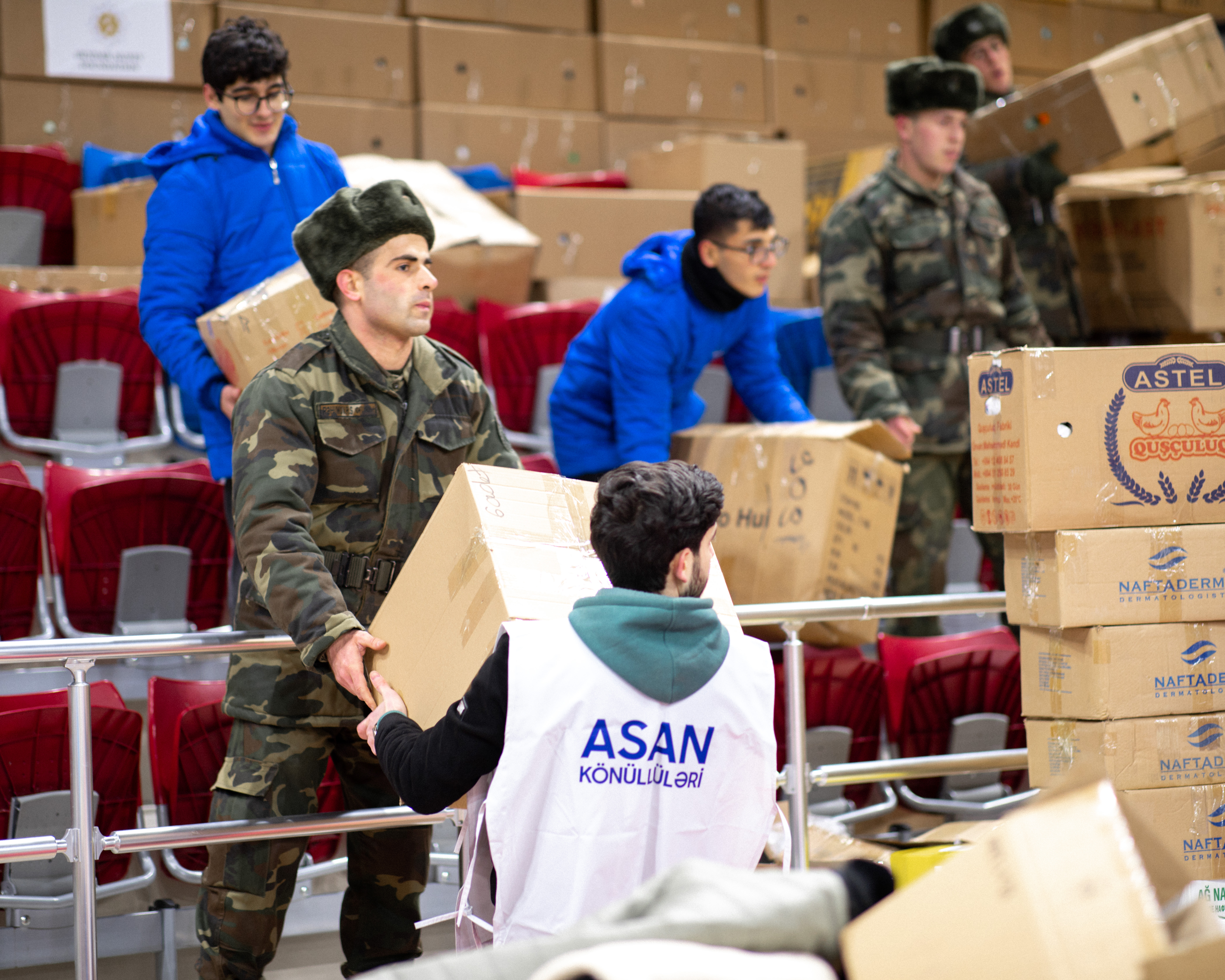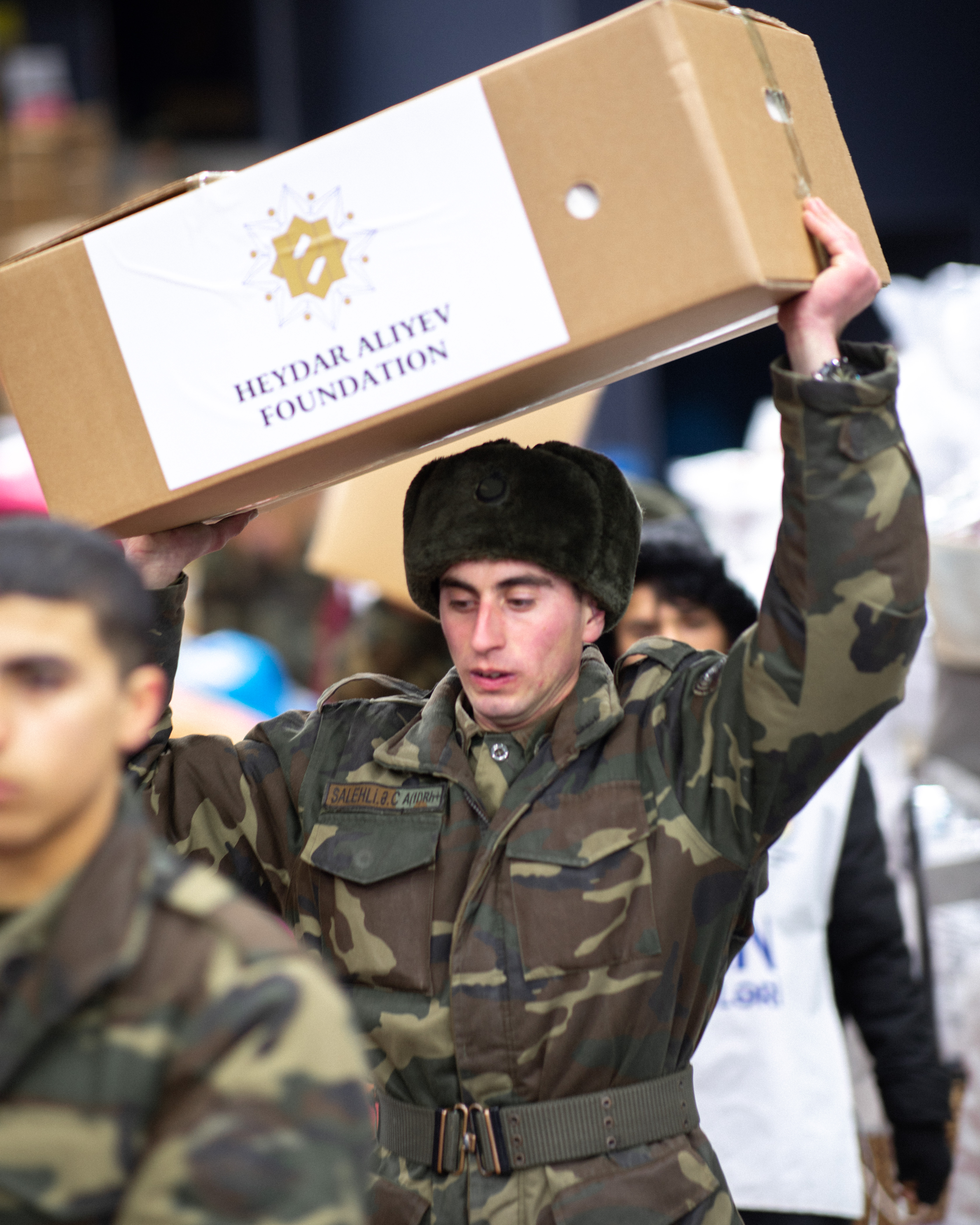 Türkiyənin Azərbaycandakı səfirliyinin humanitar yardım çağırışına dəstək olaraq təşkilan olunan aksiyada vətəndaşlar tərəfindən ianə olunan bütün isti geyimlər və lazımi əşyalar könüllülər tərəfindən çeşidlənərək qutularda TIR-lara yüklənib və qardaş ölkəyə yollanmaq üçün istiqamət alıb.