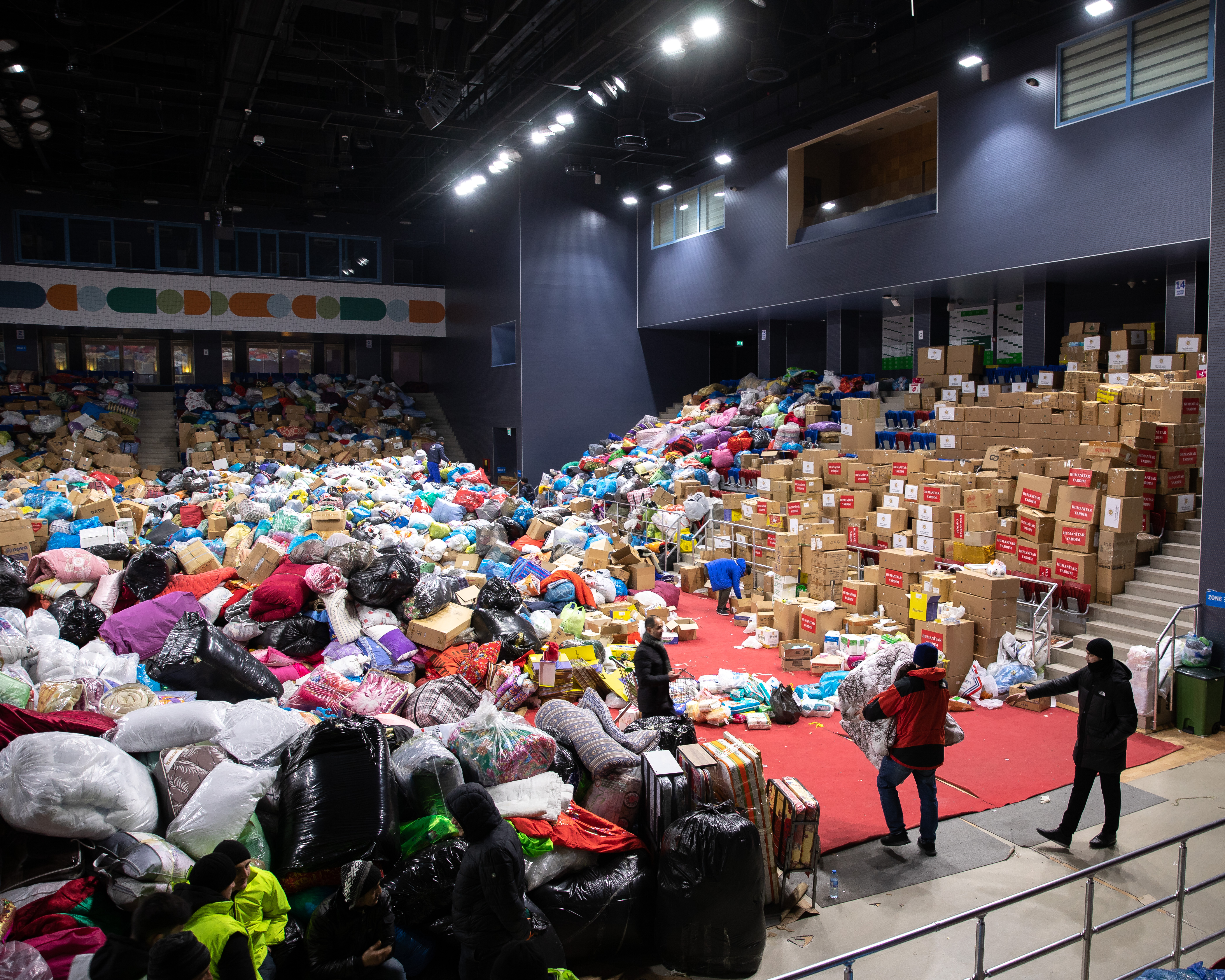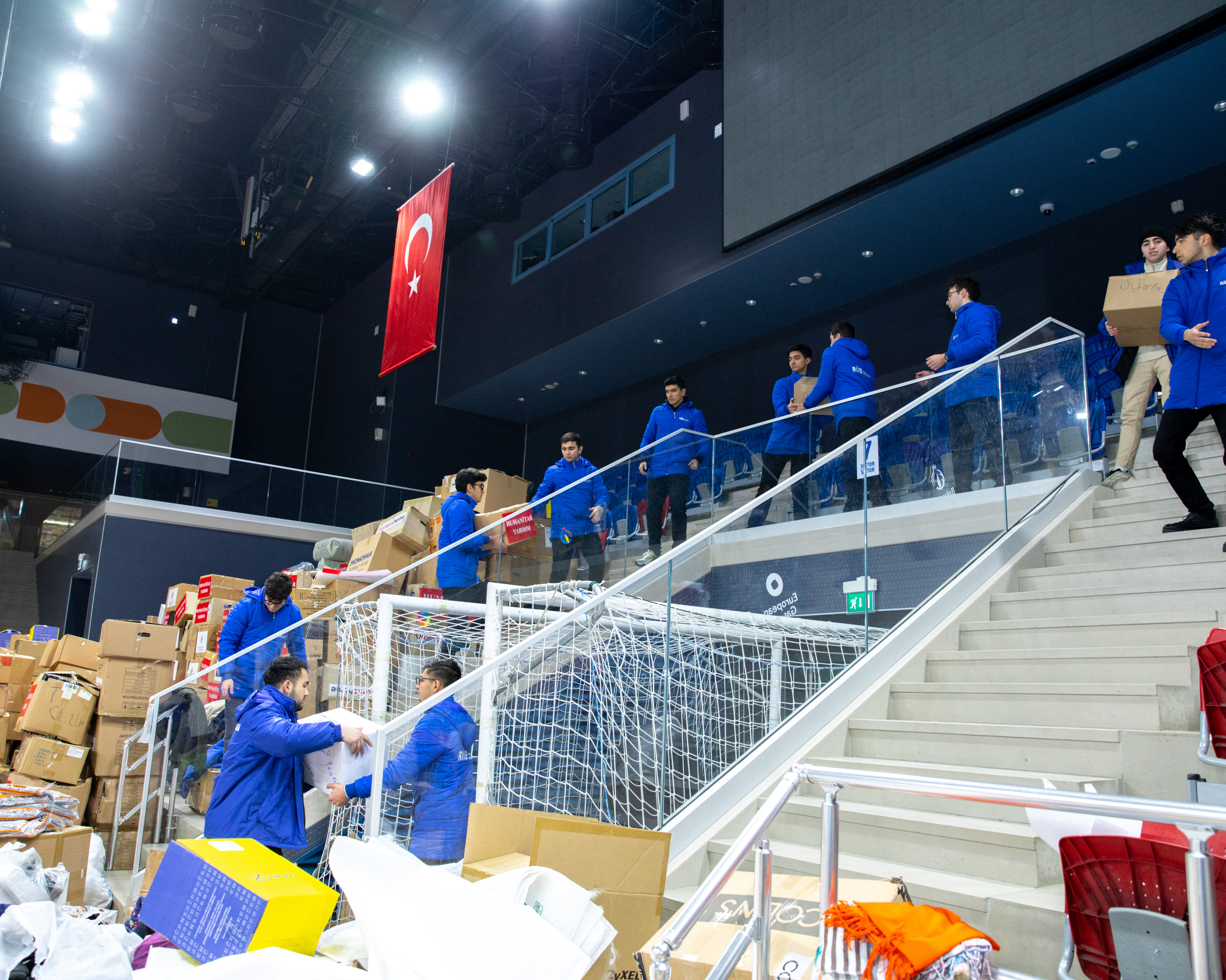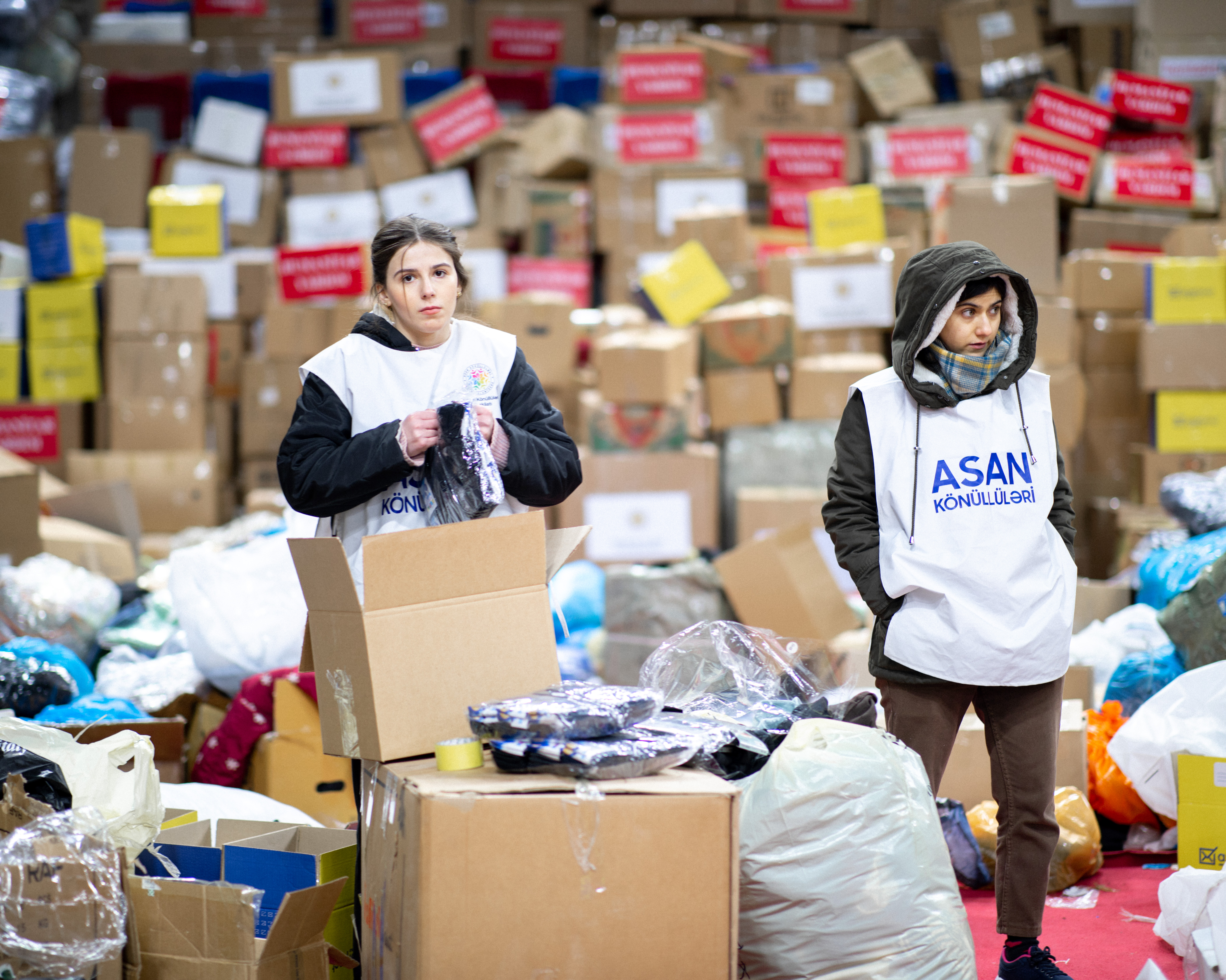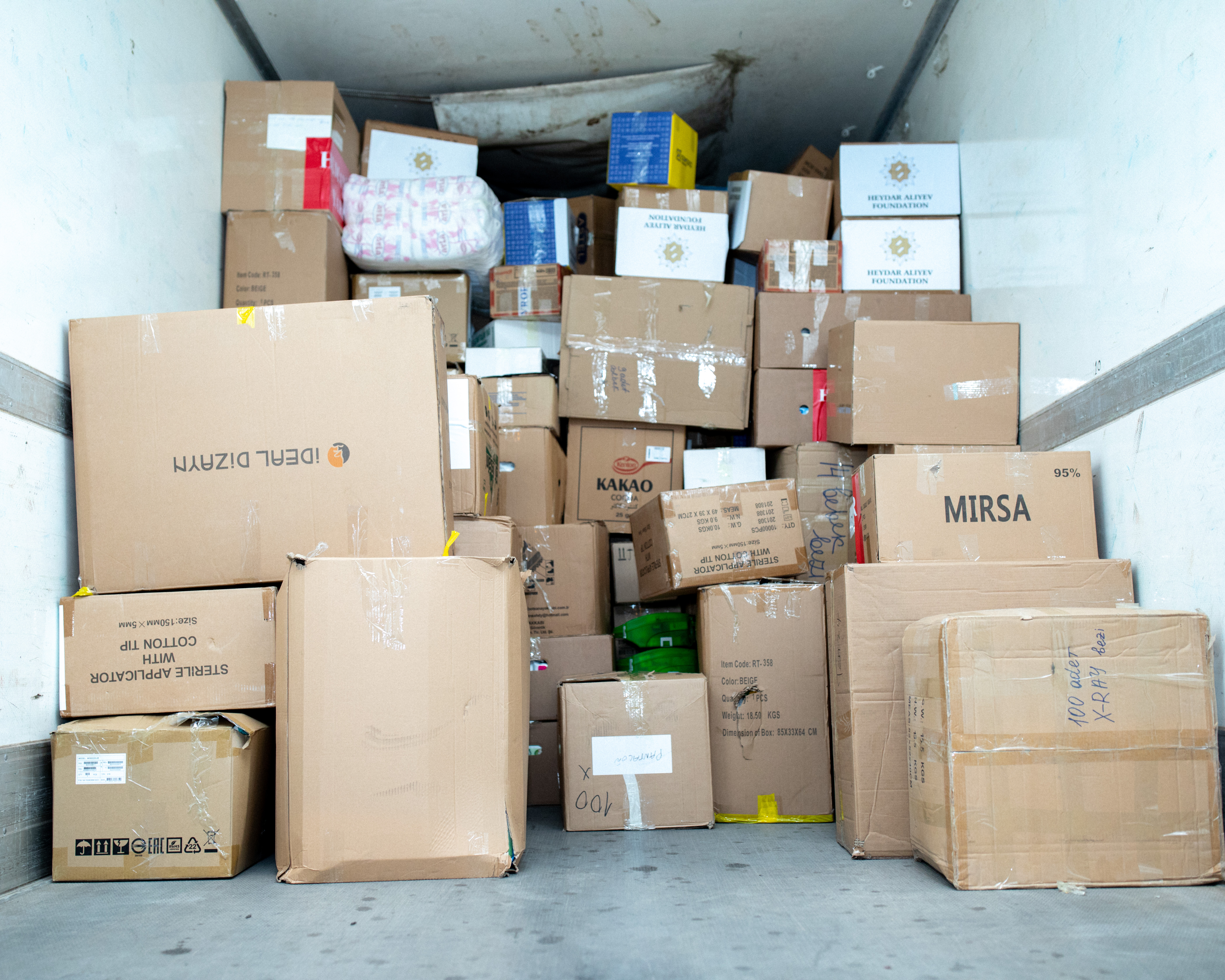 Türkiyənin Azərbaycandakı səfirliyinin humanitar yardım çağırışına dəstək olaraq təşkilan olunan aksiyada vətəndaşlar tərəfindən ianə olunan bütün isti geyimlər və lazımi əşyalar könüllülər tərəfindən çeşidlənərək qutularda TIR-lara yüklənib və qardaş ölkəyə yollanmaq üçün istiqamət alıb.