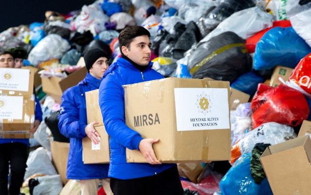 Heydər Əliyev Fondunun “Regional İnkişaf” İctimai Birliyinin (RİİB) Türkiyədə zəlzələ bölgəsinə humanitar yardım kampaniyası çərçivəsində vətəndaşlardan toplanan isti geyim və digər zəruri əşyalar ötən gün gecə saatlarınadək zəlzələ bölgəsinə yola salınmaq üçün qablaşdırılıb.