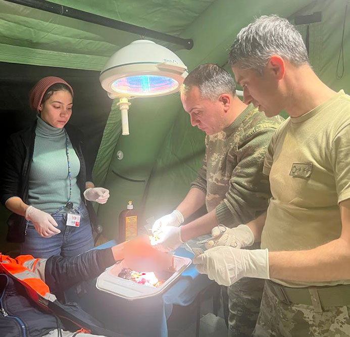 Zəlzələdə xəsarət alan insanlara tibbi yardımın göstərilməsi, onların tezliklə sağalaraq normal həyata qayıtması üçün hərbi tibb personalımız qardaş ölkədə yüksək peşəkarlıqla fəaliyyətini davam etdirir.