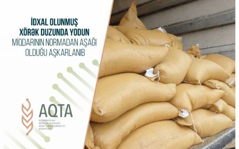 Belə ki, “İnovax General Trading” MMC-nin Pakistandan idxal etdiyi “S S Brothers” şirkətinin istehsalı olan, ümumi çəkisi 22.29 ton xörək duzu məhsuluna (10.10.2022-31.12.2024 istehsal və son istifadə tarixli) Agentliyin müfəttişlərinin keçirdiyi baxış zamanı götürülən nümunələrin müayinələri nəticəsində məhsul partiyasında yodun miqdarının normadan aşağı olduğu aşkarlanıb.