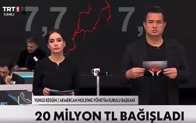 Bunun ardından “Akmercan Holding”in İdarə Heyətinin rəhbəri Yunus Kesgin zəng edib. O, 20 milyon lirə ianə edəcəyini açıqlayıb. Acun isə bu rəqəmi əvvəlcə 25, daha sonra 30 min lirə etməyi xahiş edib. Yunus Kesgin “Ali Koç və sizin xətrinizə 30 milyon lirə edirik”, - deyə aparıcının xahişinə müsbət cavab verib.