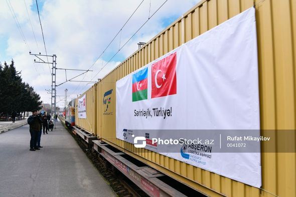 “Azərbaycan Dəmir Yolları” (ADY) QSC-nin Biləcəri dəmiryol stansiyasından Türkiyəyə 25 konteynerdən ibarət qatarla yardım göndərilib.