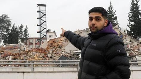 Mustafa Kamal Universiteti Memarlıq Fakültəsinin Ürgen Paşa Məhəlləsi Atatürk küçəsində yerləşən və ilk zəlzələlərdə ciddi ziyan görən 7 mərtəbəli qonaq evi dünənki zəlzələlərdə tamamilə dağılıb, dağılmış binanın yalnız yanğın pilləkənlərinin ayaqda qaldığı görülüb.