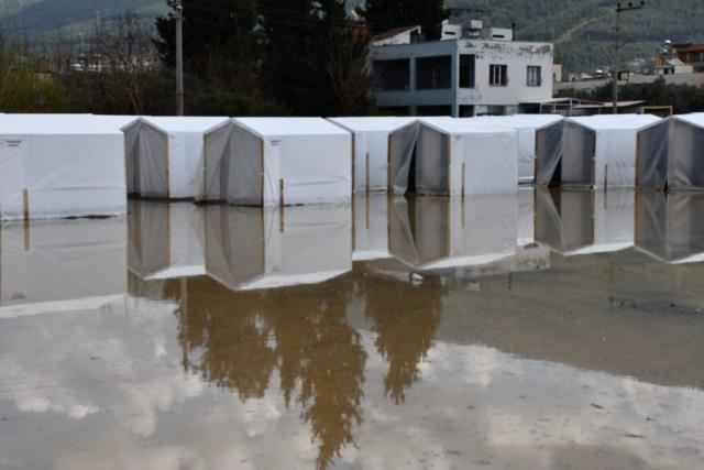 Hatayın Payas rayonunda təsirli olan yağış zəlzələ qurbanlarını çətin vəziyyətdə qoyub, çadırların yerləşdiyi ərazidə gölməçələr yaranıb. Bütün əşyalarının islandığını bildirən zəlzələ qurbanları, "İlk dəfədir ki, belə yağış görürük. Zəlzələdən sonra tamamilə dağıldıq" dedilər. .