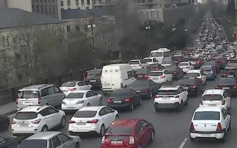 Bakının bir sıra yollarında nəqliyyatın hərəkətində tıxac yaranıb.