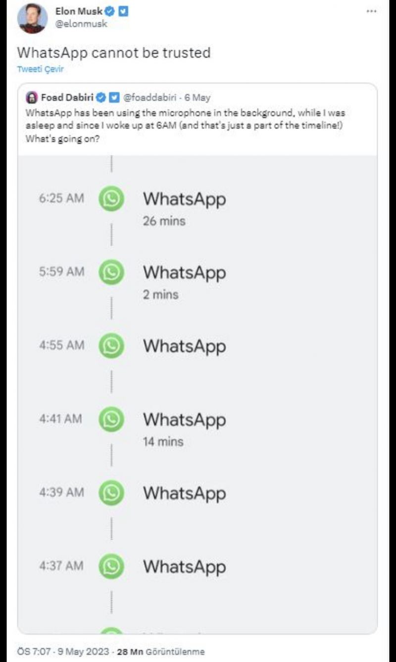 Sitat.info "TRT Haber"ə istinadən xəbər verir ki, Foad Dabiri adlı istifadəçi "WhatsApp"ın aktiv şəkildə istifadə edilmədikdə belə, proqramın mikrofondan dəfələrlə istifadə etdiyi barədə narahatlığını bildirib.