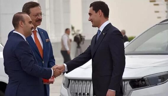 Türkiyənin sənaye və texnologiya naziri Mehmet Fatih Kaçır “Arkadağ Ağıllı Şəhər”in açılış mərasimində Türkmənistan Prezidenti Serdar Berdiməhəmmədova 2 ağ rəngli “Togg” elektromobilinin açarlarını təqdim edib.
