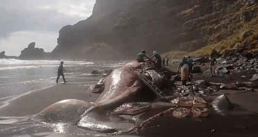 Tədqiqatçı kaşalotun qalın bağırsağını tədqiq edib və oradan diametri 50-60 santimetr və çəkisi 9,5 kiloqram olan daşa bənzər bir kütlə çıxarıb.