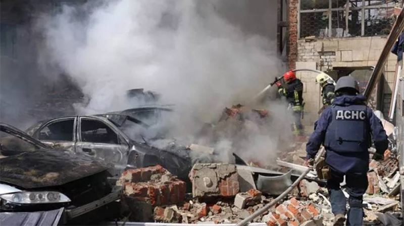 Rusiyanın Ukraynanın Xarkov şəhərinə hücumu nəticəsində iki bina dağılıb, bir binada yanğın baş verib.