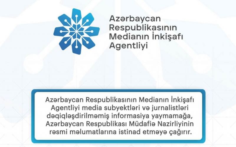 MEDİA Agentliyi media subyektləri və jurnalistləri dəqiqləşdirilməmiş informasiya yaymamağa, Azərbaycan Müdafiə Nazirliyinin rəsmi məlumatlarına istinad etməyə çağırır.