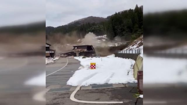 Yaponiyanın İşikava əyalətində baş verən 7,6 bal gücündə zəlzələdən sonra baş verən sürüşmə ətrafdakılar tərəfindən anbaan qeydə alınıb. Sürüşmə nəticəsində çoxlu evlər dağılıb.