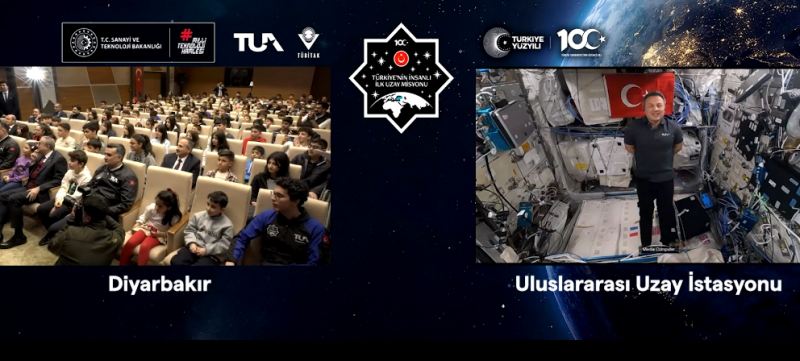 Türkiyənin ilk astronavtı Alpər Gezeravcı, Beynəlxalq Kosmik Stansiyadan (BKS) Diyarbakır Abdullah Tivnikli Layihəsi Anadolu İmam Hatip Liseyinin şagirdləri ilə danışıb.