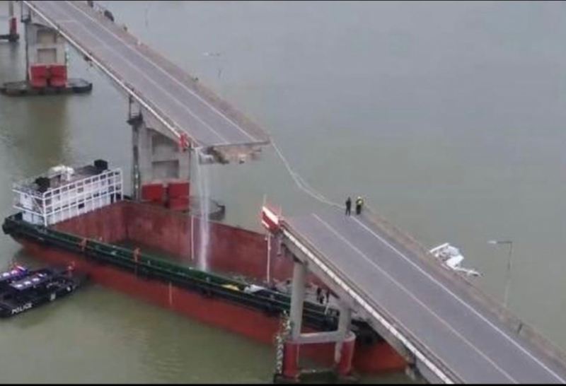 Çinin cənubundakı Quancou şəhərində Mirvari çayında hərəkət edən yük gəmisi körpüyə çırpılaraq, onu dağıdıb.