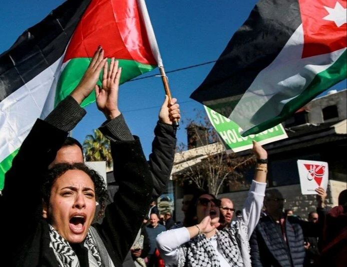 İordaniyanın paytaxtı Əmmandakı Hüseyni məscidinin qarşısına toplaşan yüzlərlə insan məsciddən təxminən bir kilometr aralıda yerləşən Ən-Nahil meydanına doğru addımlayıb.