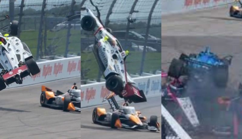 "IndyCar"ın sosial şəbəkə hesablarında yayımlanan videoda hadisənin bütün rakurslardan anbaan görüntüləri əks olunub.