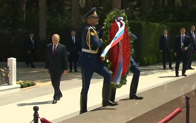 Daha sonra Rusiya Prezidenti Vladimir Putin Şəhidlər Xiyabanını ziyarət edib.