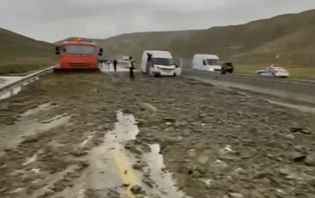Yol daş və qumdan təmizləndikdən sonra hərəkətin axını əvvəlki qaydada bərpa edilib.
