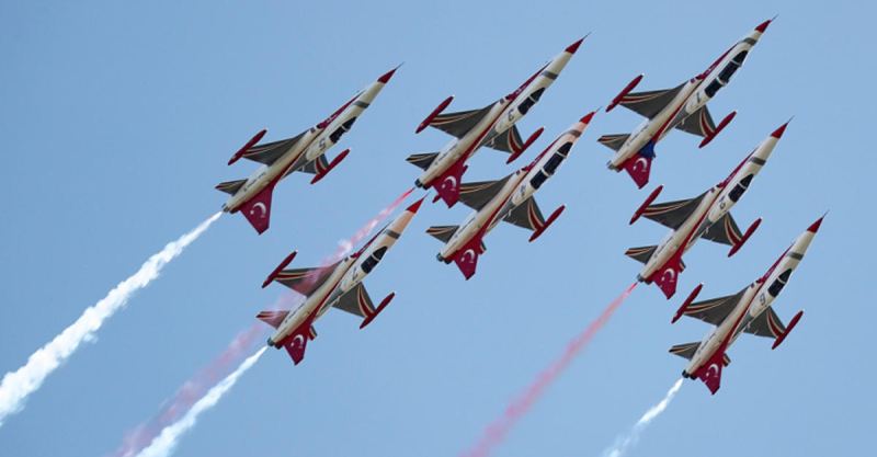 Sonra Türkiyə Hərbi Hava Qüvvələrinin (HHQ) "Türk ulduzları" aviaqrupunun təqdimatında nümunəvi uçuşlar keçirilib.