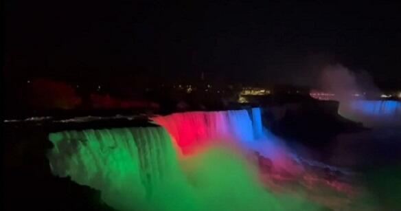 Kanadanın Niaqara şəlaləsi 28 May – Müstəqillik Günü münasibətilə Azərbaycanın Dövlət Bayrağının rəngləri ilə işıqlandırılıb.