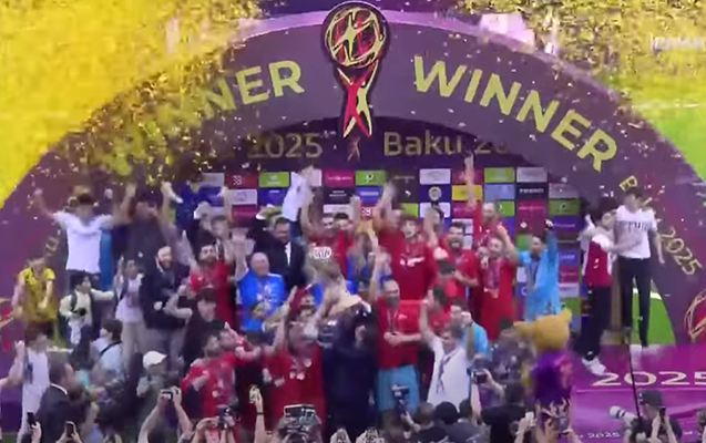 Mundialın qalibi olan Azərbaycan yığması qızıl medal və kubokla təltif edilib.