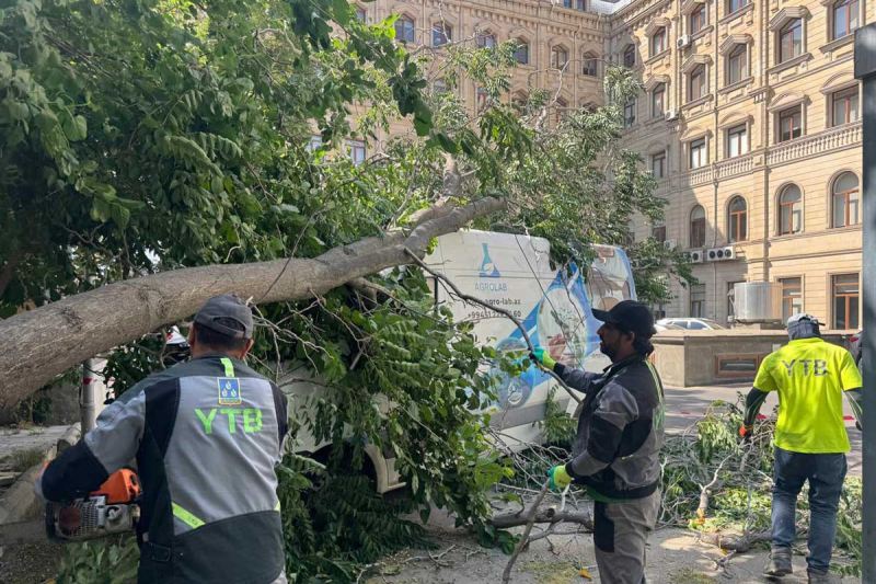 Yaşıllaşma Təsərrüfat Birliyinin əməkdaşları tərəfindən zədələnən budaqlar kəsilib, sınan ağaclar götürülərək ərazi təmizlənib.