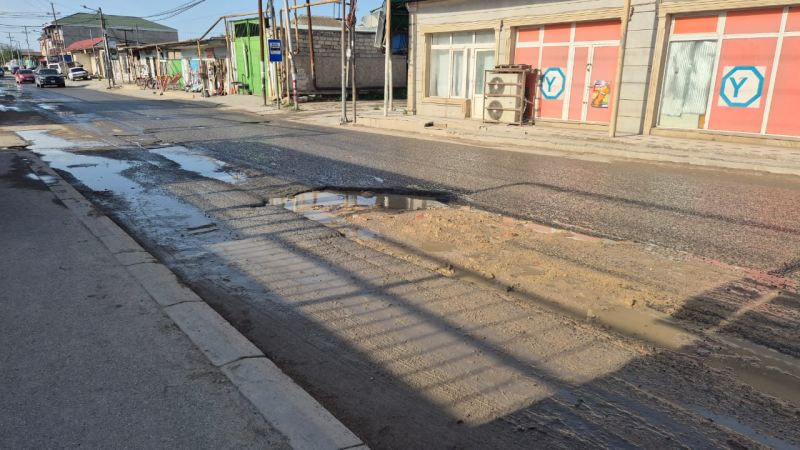 Sitat.info olaraq, sakinlərin şikayəti üzərinə əraziyə baş çəkdik və asfalt örtüyünün böyük bir hissəsinin qazılaraq, yararsız hala salındığını müşahidə etdik. Yağış və qrunt suları da yoldakı boşluqlara dolduğundan böyük gölməçələr yaranmışdı. Qazılarkən məqsəd həm də kanalizasiya sisteminin çəkilməsi olsa da, bu məsələ tamamilə gündəlikdən çıxarılıb. Hazırda qəsəbədə ümumiyyətlə kanalizasiya xətti yoxdur.