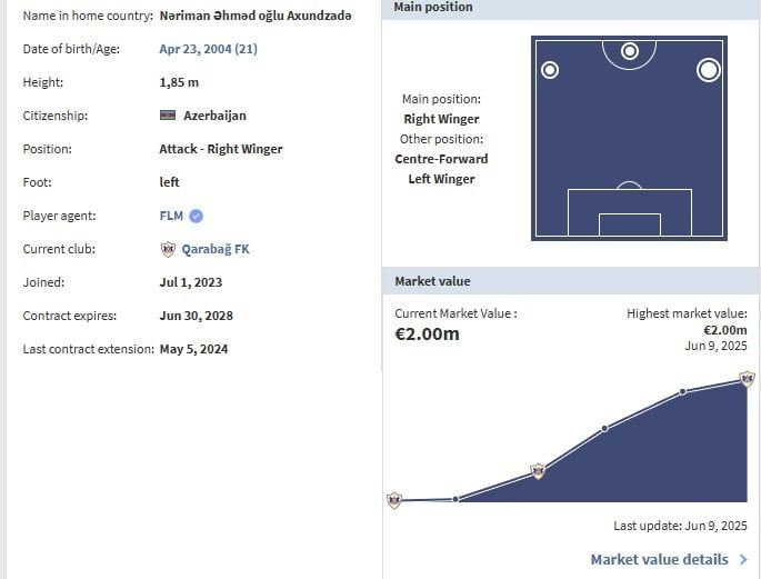 Dəyəri 2 milyon avroya yüksələn Nəriman Axundzadə isə 3-cü pillədə qərarlaşıb.