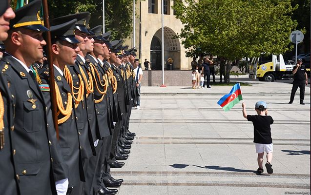 Hazırda paytaxt Bakının müxtəlif mərkəzi küçə və prospektlərində hərbi orkestrlərin müşayiəti ilə hərbi qulluqçuların yürüşü keçirilir.