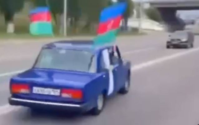 Rusiyanın Saratov şəhərində yolda Azərbaycan bayraqları ilə hərəkət edən avtomobillərin görüntüləri yayılıb.