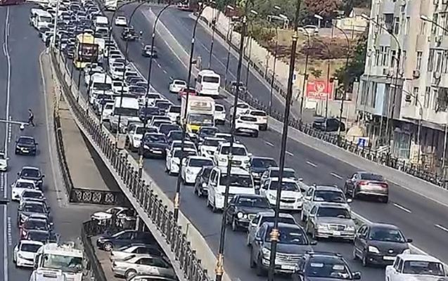 5. Üzeyir Hacıbəyli küçəsi, Azadlıq prospekti ilə kəsişməyə qədər sıxlıq müşahidə olunur.