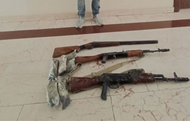 Bildirilib ki, onun yaşadığı evdən 2 "Kalaşnikov" avtomatı, 1 "İJ" markalı ov tüfəngi, 5 patron darağı və 150 ədəd patron aşkarlanaraq götürülüb.