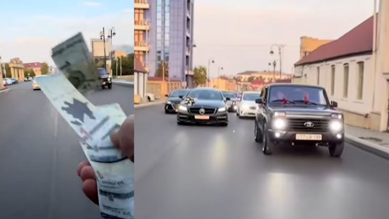 “Sitat.info” xəbər verir ki, vdeoda bir neçə avtomobilin bəy-gəlin maşınını müşayiət edərkən yol hərəkəti qaydalarımı pozub. Avtomobillərdən pul səpməyə başlayıblar.