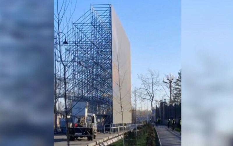 Portal yazır ki, sözügedən iqamətgahın yaxınlığında təqribən 200 metr məsafədə nəhəng ekran quraşdırılıb.