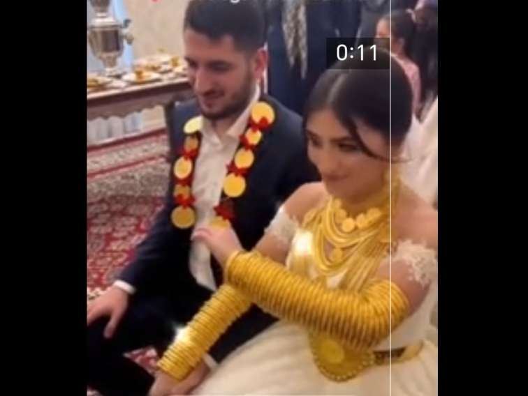 Sitat.info Bizim.Media-ya istinadla xəbər verir ki, paylaşılan görüntülərdə gəlinin qollarına və boynuna çox sayda ağır və bahalı zinət əşyalarının taxıldığı görünür.