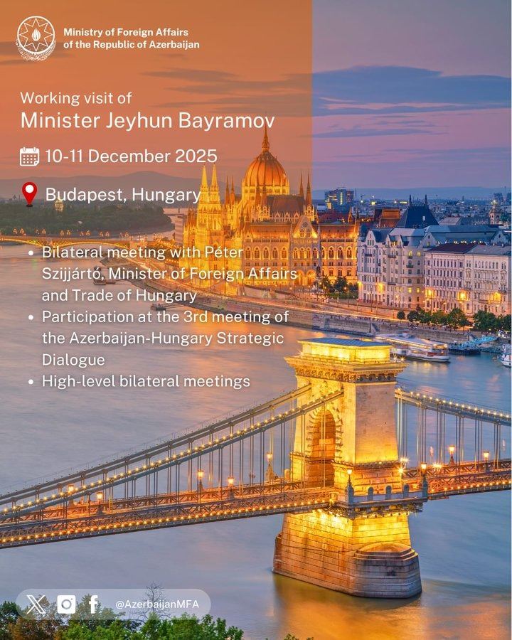 Azərbaycan xarici işlər naziri Ceyhun Bayramov Macarıstana işgüzar səfərə yola düşüb.