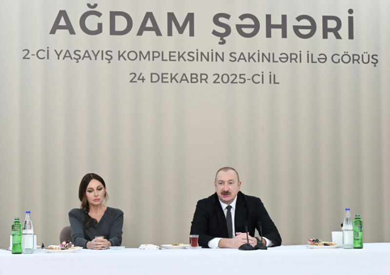 Azərbaycan Prezidenti İlham Əliyev və birinci xanım Mehriban Əliyeva bu gün Ağdam şəhərində 2-ci yaşayış kompleksinin açılışında iştirak edib və buraya köçən sakinlərlə görüşüblər.