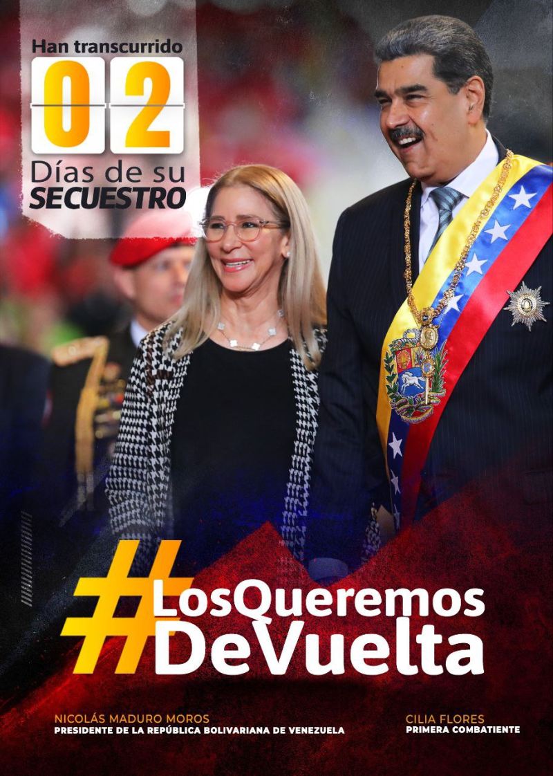 Venesuela Prezidenti Nikolas Maduronun rəsmi teleqram kanalı onun həyat yoldaşı Siliya Flores ilə birlikdə tutulmasından sonrakı günləri saymaqdadır.