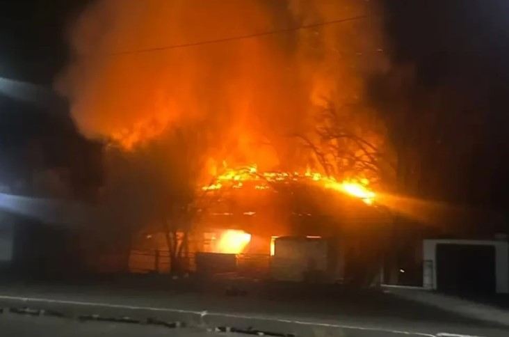 Güclü səsdən sonra binada yanğın başlayıb.