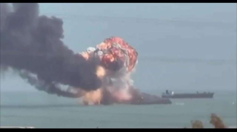 Sitat.info İran mediasına istinadən xəbər verir ki, mərminin zərbəsindən sonra gəmidə yanğın baş verib.